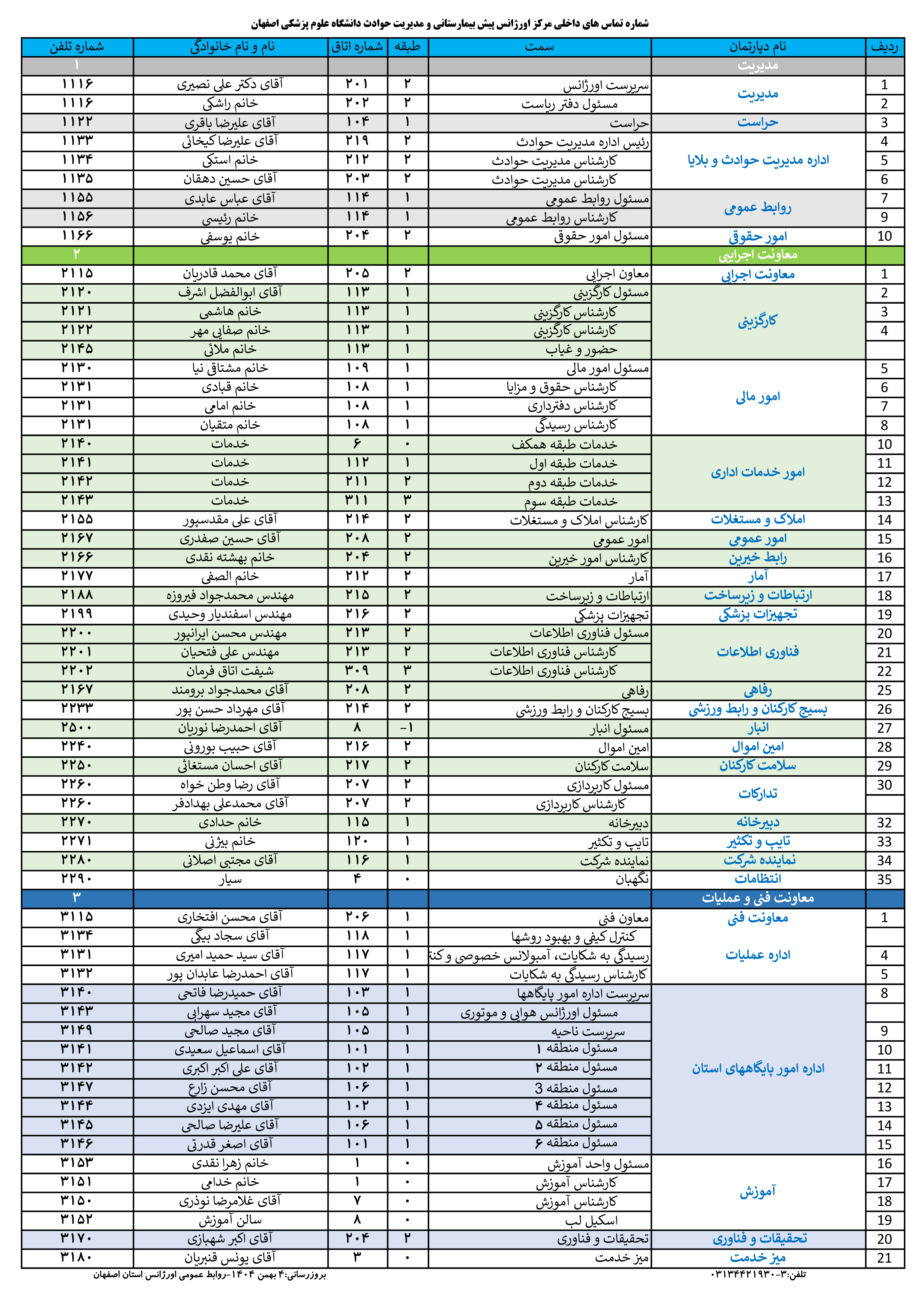 دفترچه تلفن برای هدایت به صفحه قابل جستجو شماره تلفن های اورژانس اینجا کلیک نمایید.جهت دریافت فایل دفتر تلفن بر روی عکس کلیک نمایید.