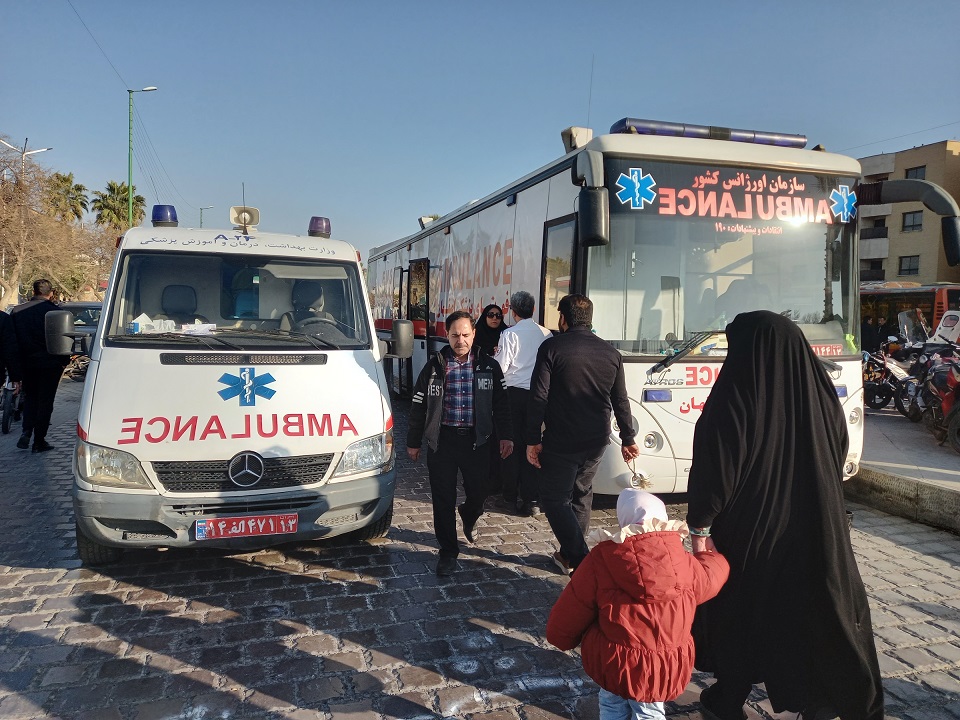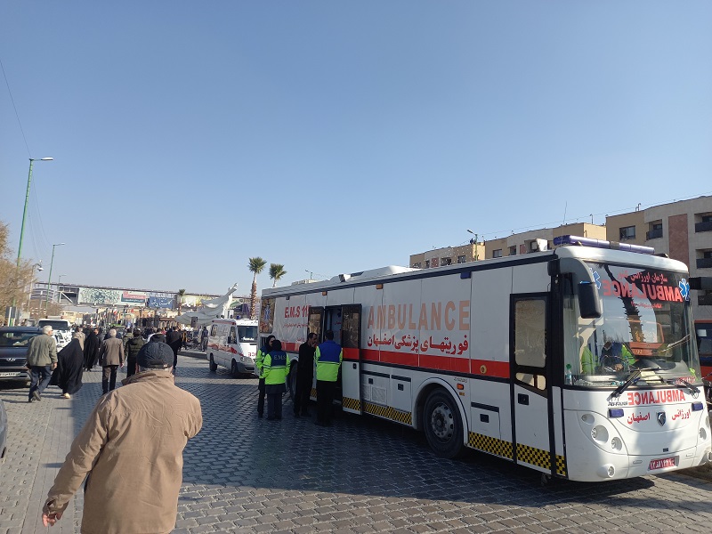 در این مراسم 8 واحد امدادی اورژانس پیش بیمارستانی شامل 2 دستگاه اتوبوس آمبولانس اورژانس پیشبیمارستانی، 6 واحد امدادی آمبولانس و 2 واحد امداد موتوری مستقر شدند.